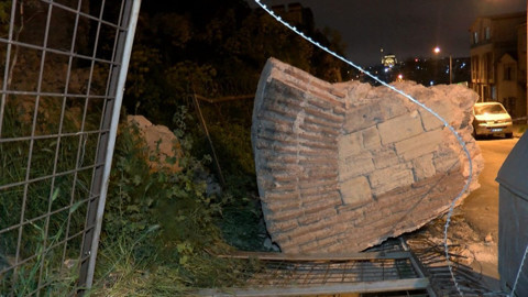 Depremde hernhangi bir can kaybı ve yıkım yaşanmadı ancak tarihi Fatih Surları’ndan kopan parça yola düştü.