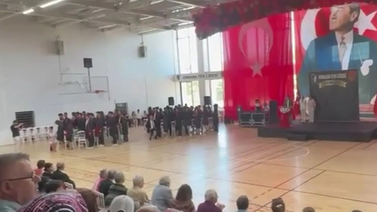 Ankara Fen Lisesi'nde spor salonunda yapılan mezuniyet töreninde, okul müdürü Melek Nur Erdoğan, mezun olan öğrenciler tarafından protesto edildi.