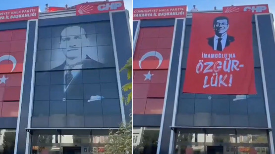 Sakarya İl Başkanlığı binasına asılan İmamoğlu pankartına sosyal medyada tepki geldi. Sakarya İl Başkanlığı binasının çatısına çıkan partililer binanın ön girişinde bulunan Mustafa Kemal Atatürk'ün büyük posterinin üstüne "İmamoğlu'na Özgürlük" pankartını asınca sosyal medyada gündem oldu ve eleştirildi.
