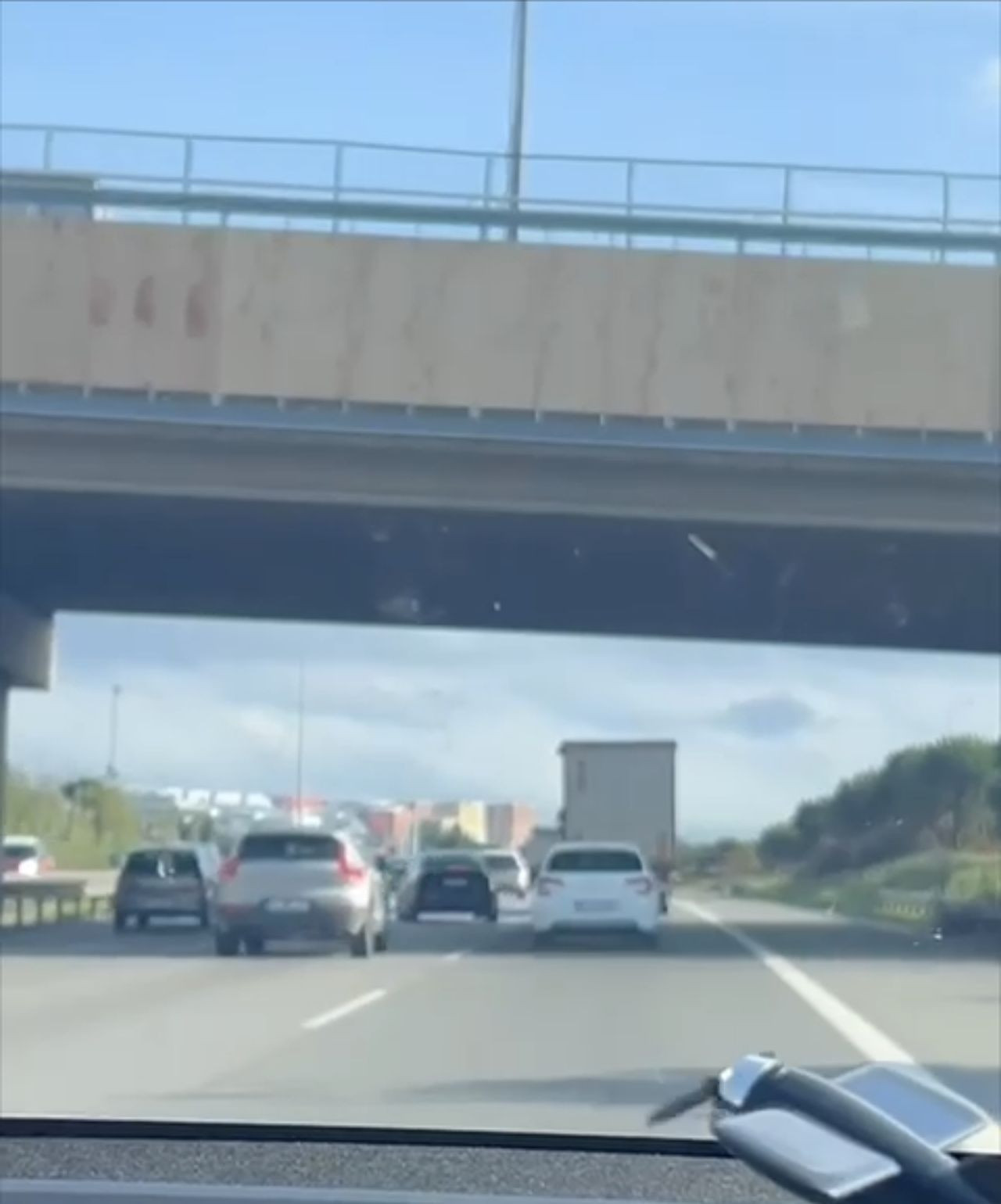 Olay, dün TEM Pendik Mehmetçik Vakfı mevkiinde meydana geldi. Ankara istikametine seyir halinde olan otomobil, yoğun trafikte art arda şerit değiştirerek tehlikeli şekilde ilerledi.