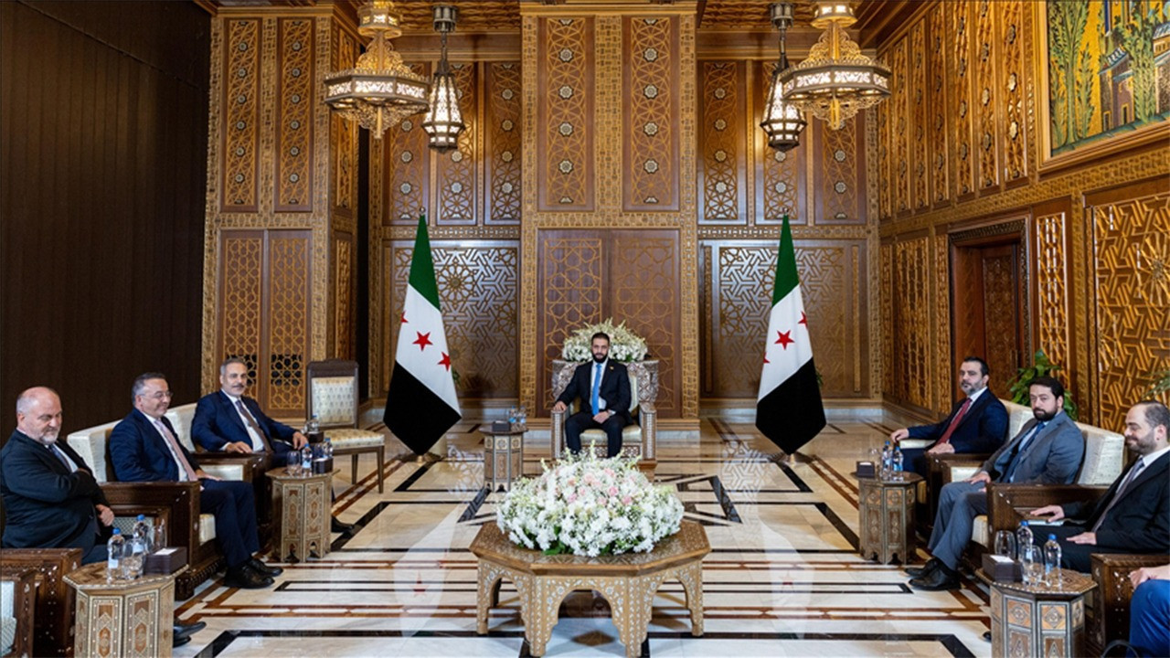 Bakan Fidan'ın Suriye Devlet Başkanı Ahmed Şara ile gerçekleştirdiği görüşmede Suriye'nin kuzeyindeki SDG terör örgütü varlığı başta olmak üzere terör örgütleri ile mücadelede iki ülke arasındaki işbirliği konuları ele alınıyor.