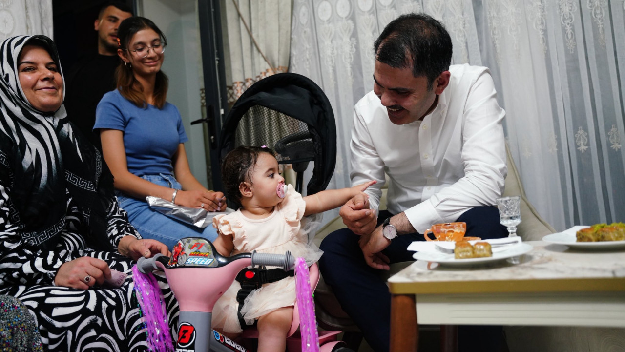 Bakan Kurum, ailenin çocukları 15 yaşındaki Aybüke ve 9 aylık Defne Nur ile yakından ilgilendi. Bakan Kurum, ev ziyaretinden çıkarken kendisinden halı saha isteyen çocuklara söz verdi.
