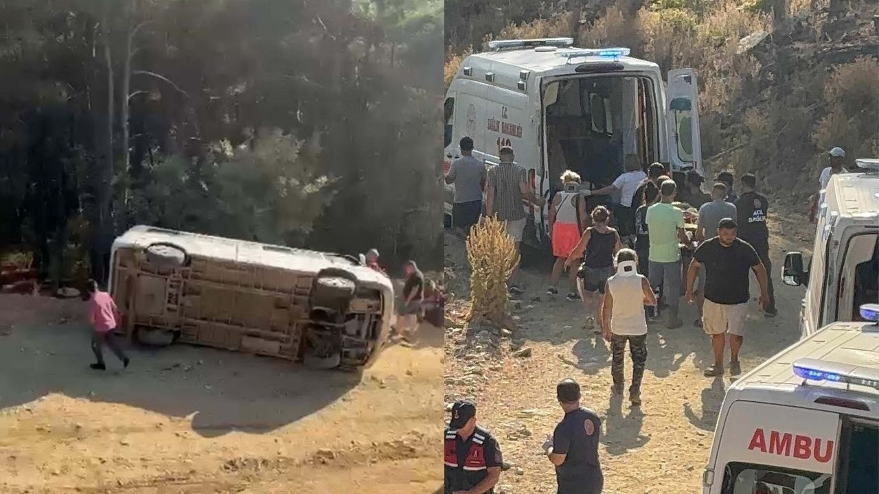 Balıkesir'in Edremit ilçesinde, tur minibüsünün şarampole devrildiği kazada 13 kişi yaralandı.