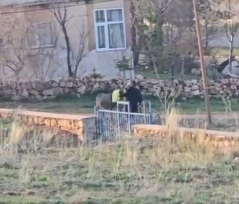 O anlar, çevredeki bir kişinin cep telefonuyla kaydedildi. İhbar sonrası jandarma ekipleri tarafından gözaltına alınan S.C. ifadesinin ardından serbest bırakıldı. S.C.'nin sinirlendiği için eşeği dövdüğünü söylediği öğrenildi.