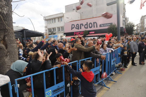 Bir market tarafından kek dağıtımı yapıldı, bu sırada izdiham yaşandı. Vatandaşlar, dağıtılan keklerden almak için birbiriyle yarıştı. Bazı çocuklar, ezilme tehlikesi geçirdi. İzdiham oluşunca keklerin dağıtıldığı araç, zabıta ve polis ekipleri tarafından tören alanından uzaklaştırıldı.