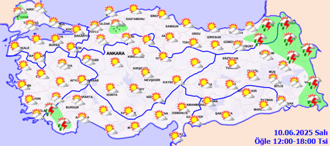 Meteoroloji Genel Müdürlüğü'ne göre, hava sıcaklıkları yurt genelinde mevsim normallerinin üzerinde seyretmeyi sürdürecek. Edirne, Karabük, Ardahan, Kars, Ağrı, Iğdır, Hakkari, Denizli, Antalya ve Van olmak üzere 10 ilde yerel sağanak ve gök gürültülü sağanak yağış bekleniyor.