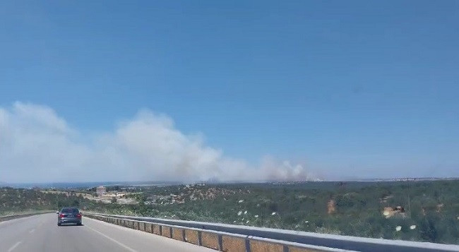 Rüzgar nedeniyle yayılan alevler, ormana da sıçradı. İhbar üzerine bölgeye itfaiye ve orman ekipleri sevk edildi. Çıkış nedeni belirlenemeyen yangına, havadan ve karadan müdahale sürüyor.