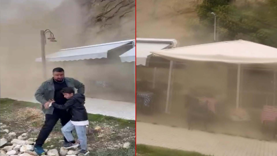 Olay anında çay bahçesinde oturan 1'i çocuk 7 kişi tehlike atlattı. Park halinde olan bir otomobilde hasar oluştu.