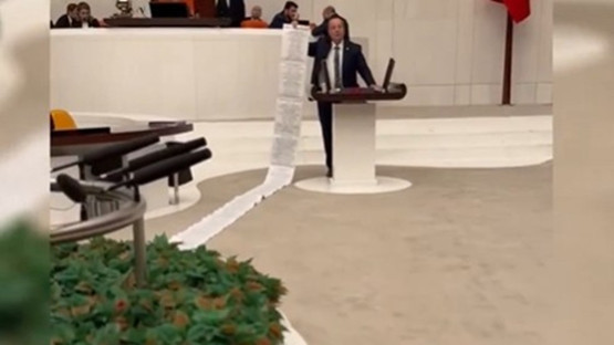 Gerçek Gündem'den Ünsal Ergel'in haberine göre Akay, Meclis salonunda tutuklu öğrencilerin isimlerinin yer aldığı ve 6,5 metre uzunluğunda olan listeyi açarak, adalet talebini dile getirdi.
