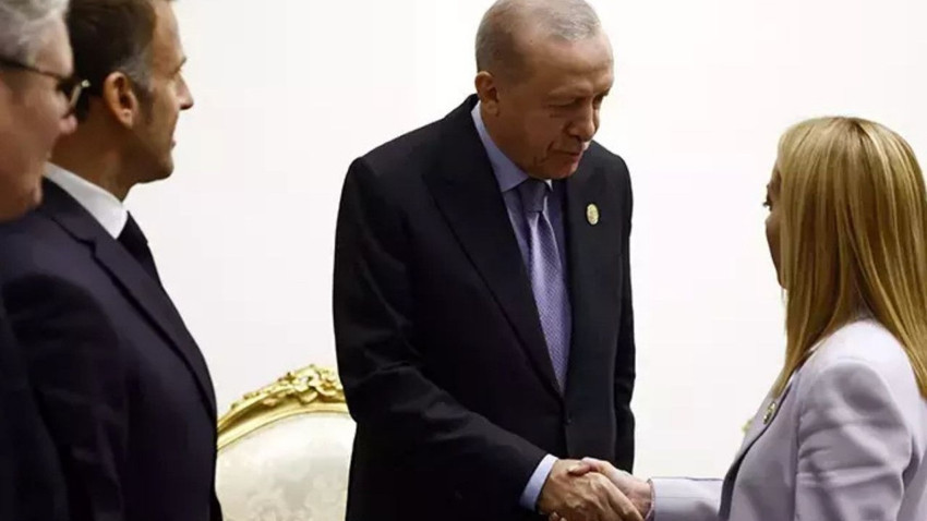 Cumhurbaşkanı Erdoğan, İtalya Başbakanı Meloni'nin uçaktan inerken kendisini gördüğünü söylemesi üzerine, "İyi görünüyorsun ama sigarayı bıraktırmam lazım." diye konuştu.