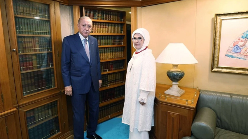 Cumhurbaşkanı Erdoğan’a ziyarette eşi Emine Erdoğan ve kızı Sümeyye Erdoğan Bayraktar eşlik etti.