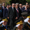 Anıtkabir ziyaretinin ardından Erdoğan, Başkomutan sıfatıyla Cumhurbaşkanlığı Külliyesi'nde tebrikleri kabul ediyor.