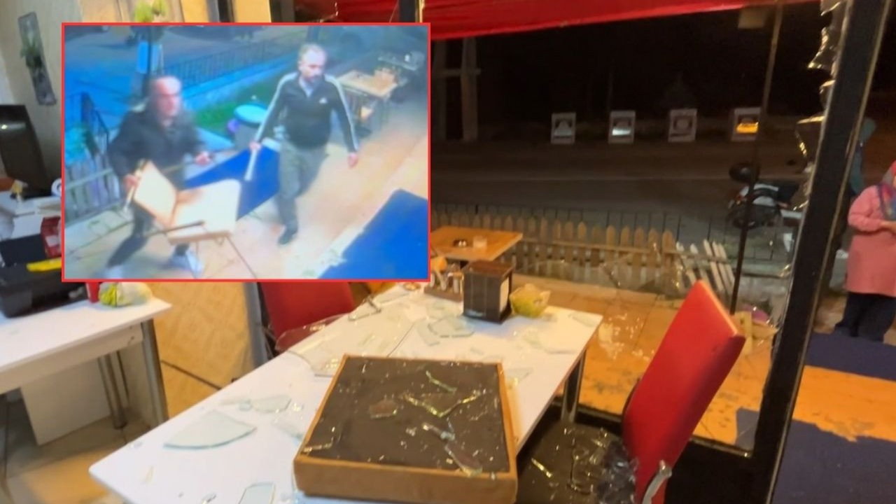Şüpheliler, dükkanın camlarını kırarak sandalyeleri fırlattı.