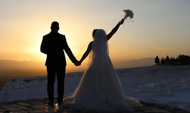 Elazığ'da yeni evlenen bir çift, anlaştıkları bir fotoğrafçıya düğün fotoğraflarını çektirdi.