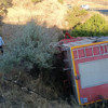 Akçakiraz Belde Belediyesi’ne ait C.A. yönetimindeki itfaiye aracı, sürücüsünün direksiyon hakimiyetini kaybetmesi sonucu şarampole yuvarlandı. Kazada 1’i araçta sıkışan 2 itfaiye eri yaralandı.