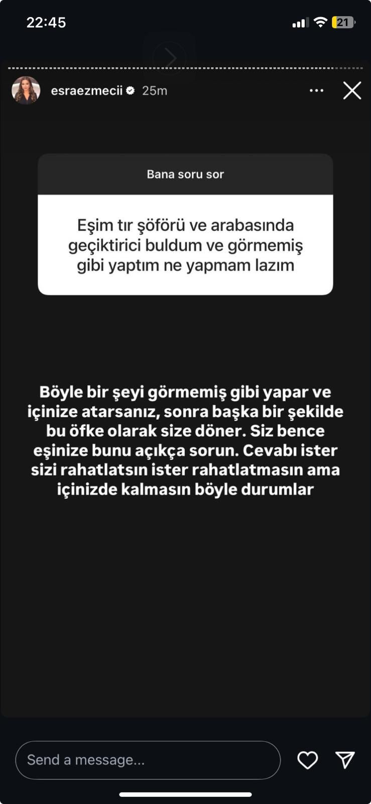 Ünlü psikolog ve yazar Esra Ezmeci, sosyal medyada paylaştığı dikkat çekici danışan mesajlarıyla sık sık gündeme geliyor.
