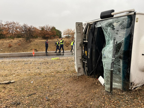 Konya’da okul servisinin kayganlaşan yoldan çıkıp, devrildiği kazada 28'i öğrenci 29 kişi yaralandı.