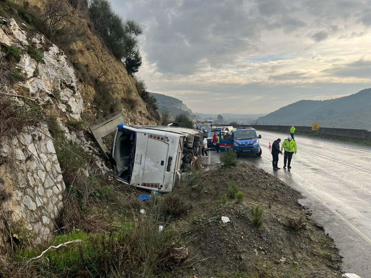 Didim'den İzmir’in Karaburun ilçesindeki Nergis Festivali'ne gidenleri taşıyan N.Ç idaresindeki 48 ALZ 167 plakalı tur midibüsü, sürücüsünün direksiyon kontrolünü kaybetmesi sonucu devrildi.