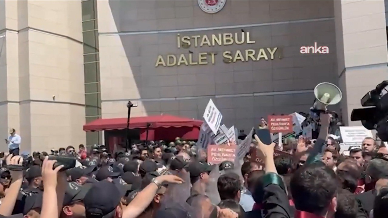 Tutuklanıp görevden alınan İBB Başkanı Ekrem İmamoğlu'nun avukatı Mehmet Pehlivan'ın tutuklanması üzerine Türkiye Barolar Birliği ve İstanbul Barosu öncülüğünde, Çağlayan'da, İstanbul Adliyesi önünde bir açıklama yapıldı.