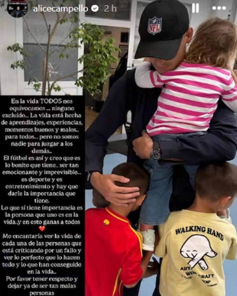 İspanyol futbolcuyla uzun yıllardır muylu bir evliliği ve dört çocuğu olan İtalyan influencer Alice Campello, eşinin kaçırdığı penaltı yüzünden ölümle tehdit edildiklerini açıkladı. Sosyal medya platformu Instagram hesabından aldığı tehdit mesajlarını takipçileriyle paylaşan Campello'nun yayımladığı bir mesaj, herkesi dehşete düşürdü.