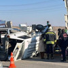 Toplam 14 kişinin yaralandığı feci kaza anları ise yakındaki bir iş yerinin güvenlik kamerasına saniye saniye yansıdı. Görüntülerde, kavşağa kontrolsüz giren otomobile hafif ticari aracın çarpma ve 2 aracın savrulma anları yer aldı.