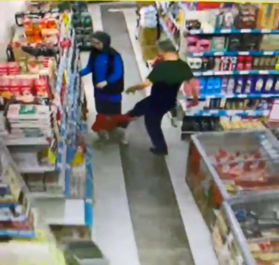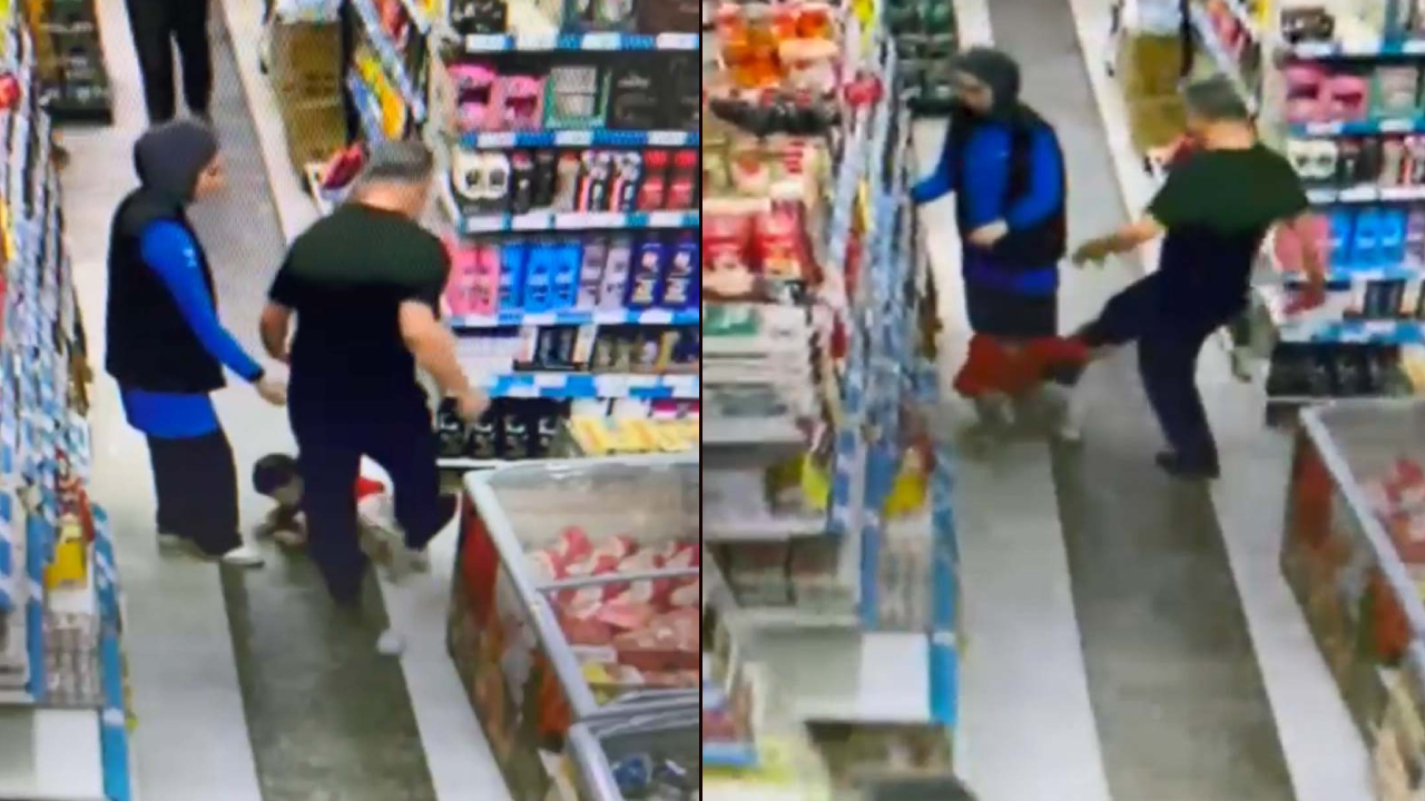Yere düşen oğlunu tekmelemeye devam eden C.E.'ye market çalışanları engel oldu. C.E., daha sonra oğlunu da alarak alışverişini tamamlayıp marketten ayrıldı. O anlara ait güvenlik kamerası görüntüleri, sosyal medyada yer aldı. Görüntülerde; C.E.'nin çocuğuna defalarca tekme attığı, yere düşmesine rağmen şiddet uygulamaya devam ettiği görüldü.