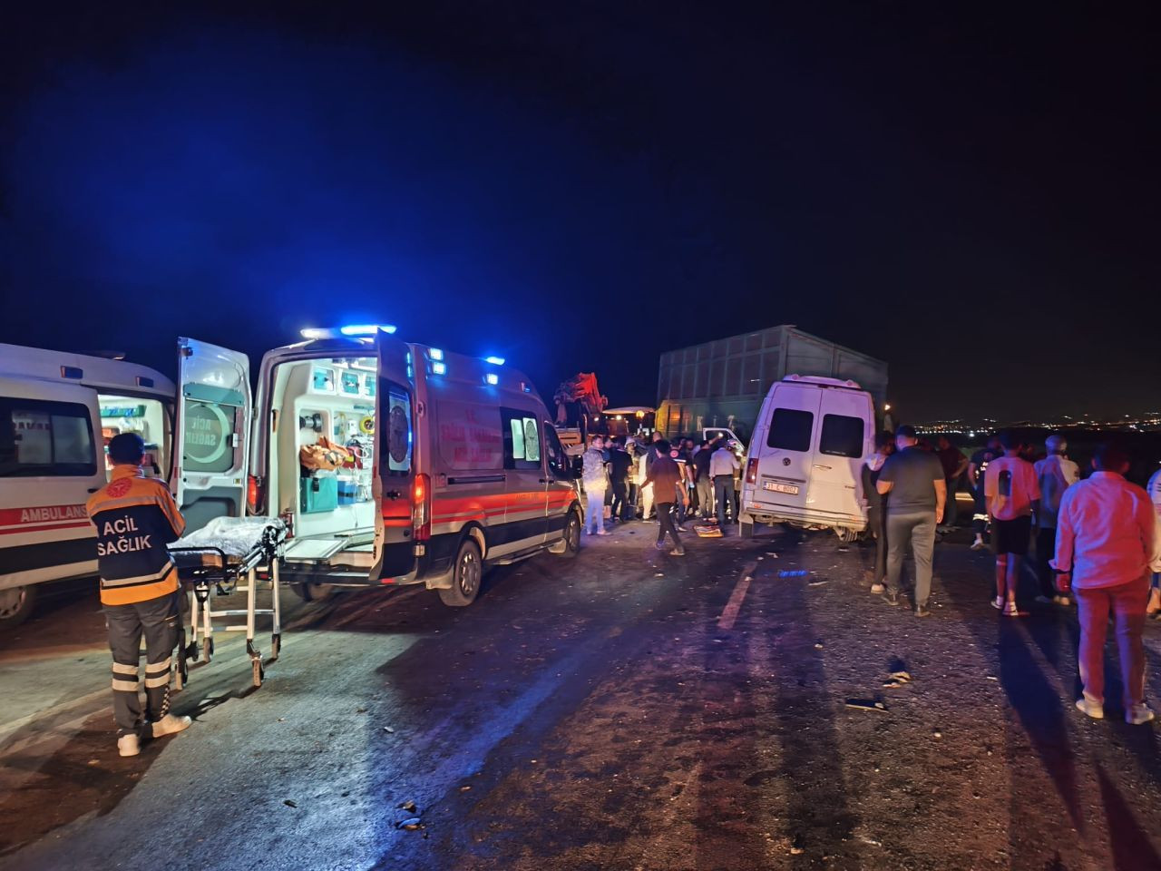 Kazada yaralanan 14 kişi hastanelere kaldırıldı.