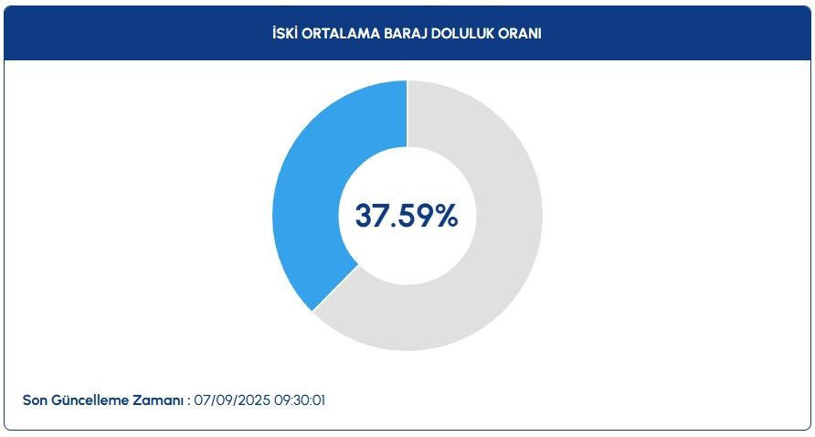 İstanbul Su ve Kanalizasyon İdaresi’nin (İSKİ) verilerine göre, megakentte barajların ortalama doluluk oranı 30 Haziran'da 66.23 iken bugünkü verilere göre yüzde 37.82 oldu.