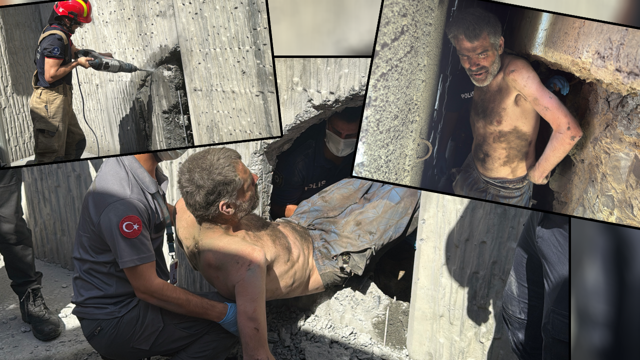 Buradan ilerleyen kişi ardından 15 metre uzunluğundaki duvarın arkasına geçti. İddiaya göre içeride günlerce mahsur kaldığı öğrenilen kişi, dışarıya çıkamayınca bağırmaya başladı. O sırada kaldırımda yürüyen bir vatandaş sesleri duydu. İhbar üzerine olay yerine polis, sağlık, itfaiye ve UMKE ekibi sevk edildi.