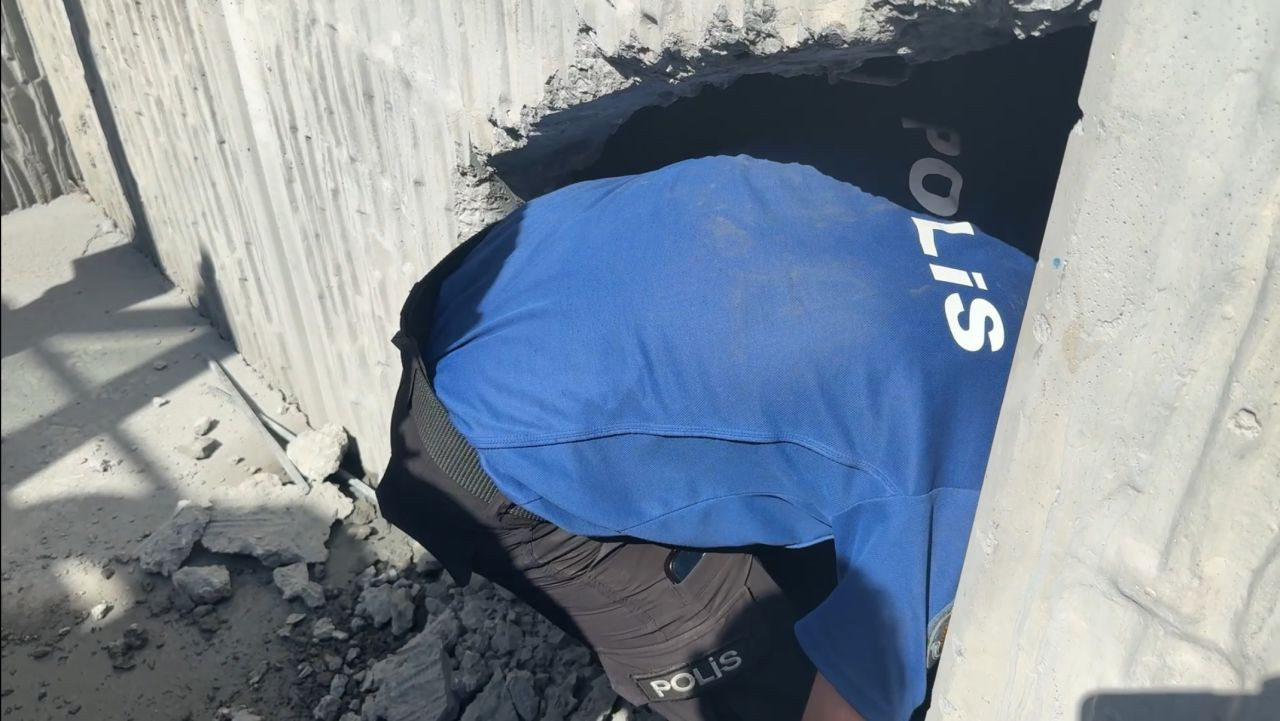 Kısa sürede olay yerine gelen ekipler, ilk olarak sesin geldiği yerdeki duvarın bir bölümünü kırdı. İçerideki kişinin açılan bölüme gelmemesi üzerine ekipler duvar boyunca takip yaptı. Kişinin içeri tünel girişindeki dar alandan geçerek girdiği tespit edildi.