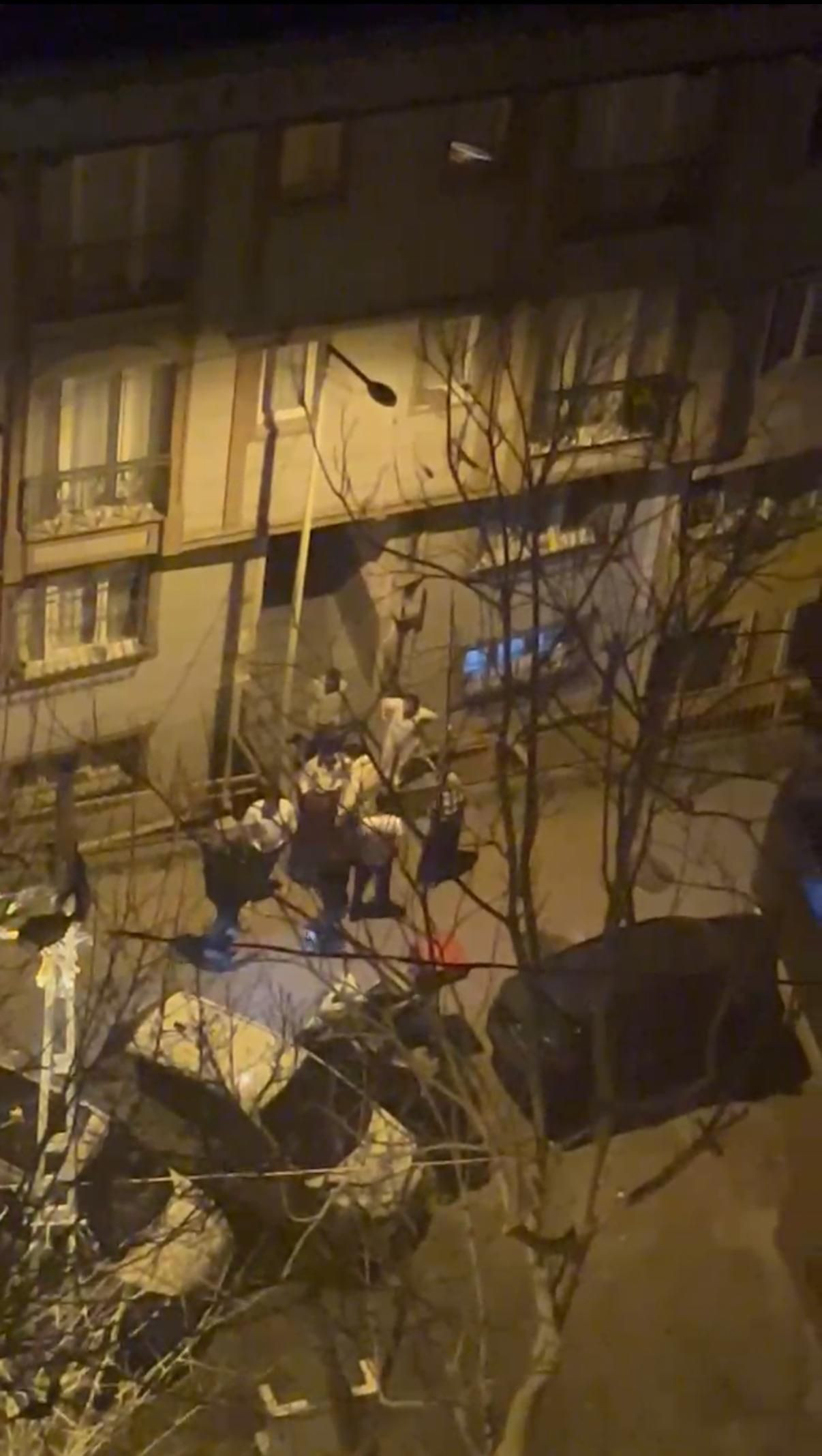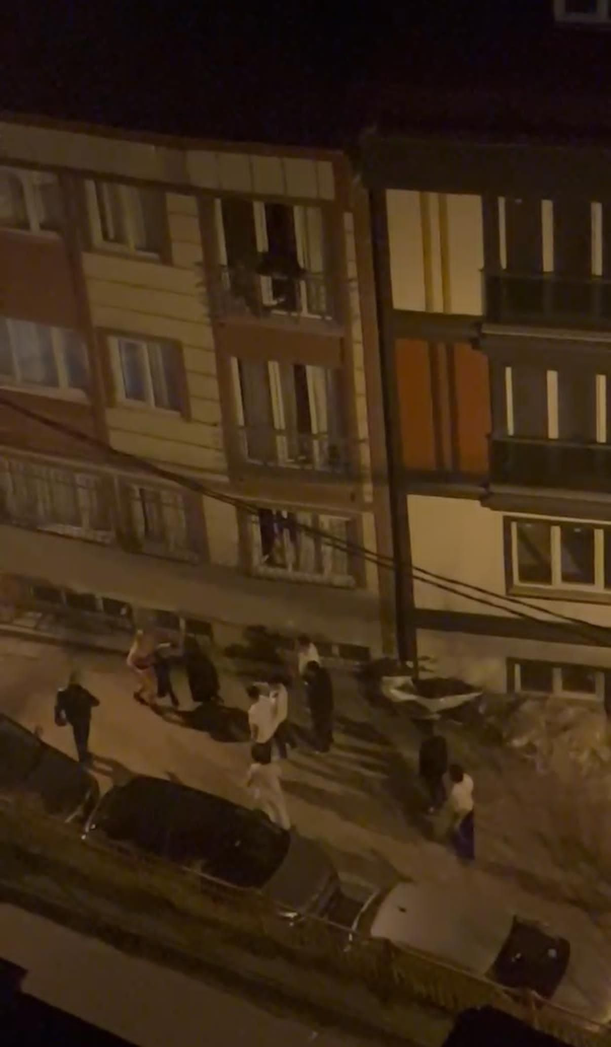 Sokağa inen bina sakinleri, kadını sakinleştirmeye çalıştı ancak kadın küfür etmeye devam etti.