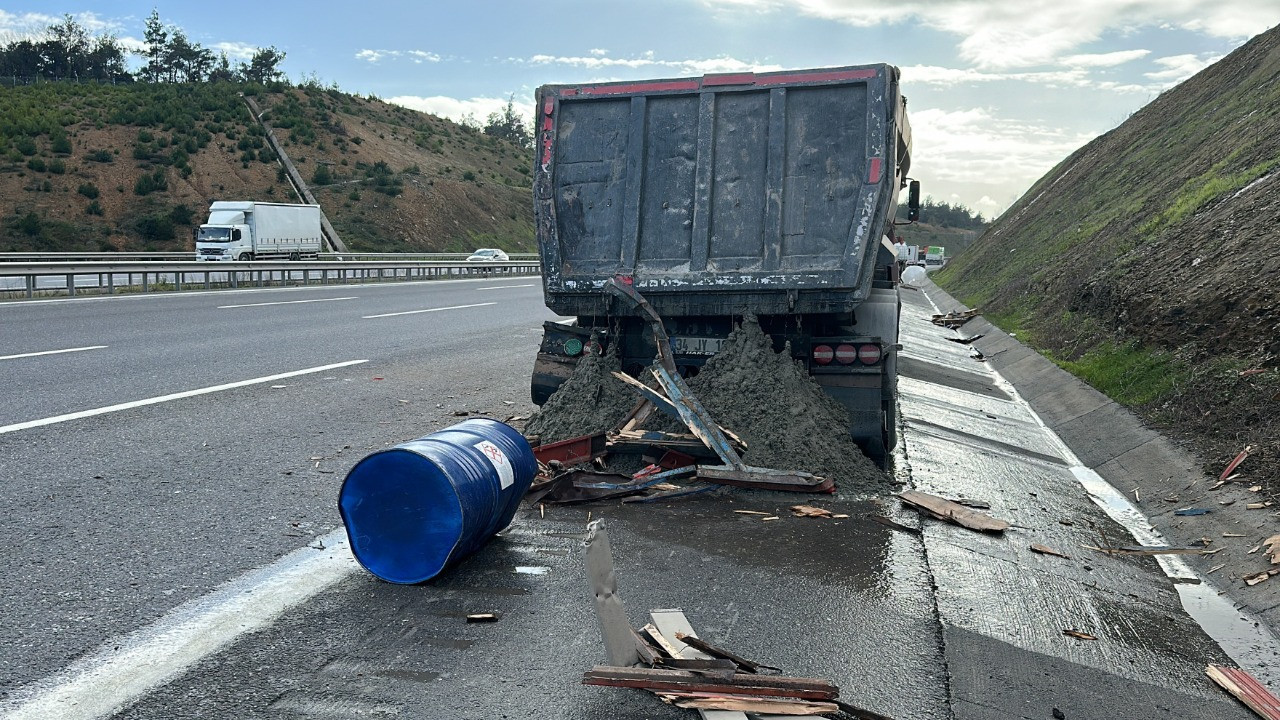 Kaza sırasında kamyonette bulunan variller otoyola savruldu. İhbar üzerine olay yerine itfaiye ve polis ekipleri sevk edildi. İncelemelerde yola savrulan varillerde dezenfektan yapımında kullanılan hammadde olduğu tespit edildi.