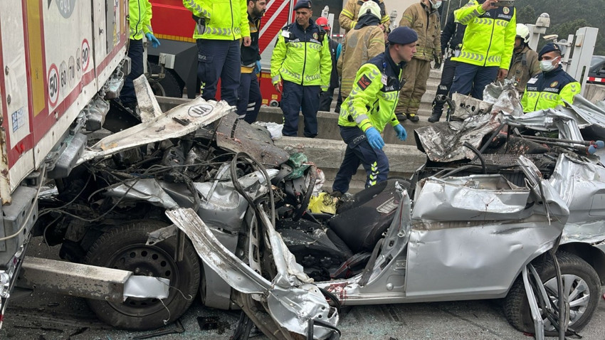 Gişelere hızla giren otomobil, önündeki TIR'ın altına girdi. İhbar üzerine olay yerine polis itfaiye ve sağlık ekibi sevk edildi.
