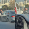 Tartışmanın kavgaya dömüşmesi üzerine hafif ticari araç sürücüsü otomobilin önünü kesti. Aracından inen sürücü otomobilin camını yumruklamaya başladı.