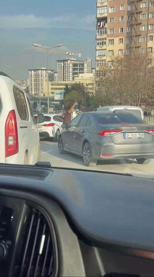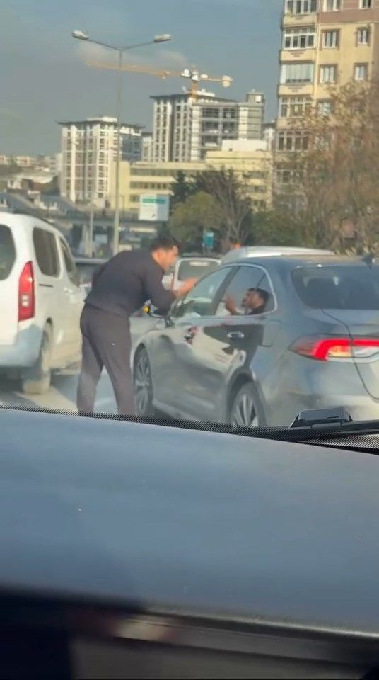 İstanbul'da iki sürücü arasında trafikte yol verme nedeniyle tartışma çıktı. Tartışmanın kavgaya dönüşmesi üzerine hafif ticari araç sürücüsü otomobilin önünü keserek aracın camını yumruklayarak dehşet saçtı. Başka bir araç sürücünün de karıştığı kavga anları kameraya yansıdı.