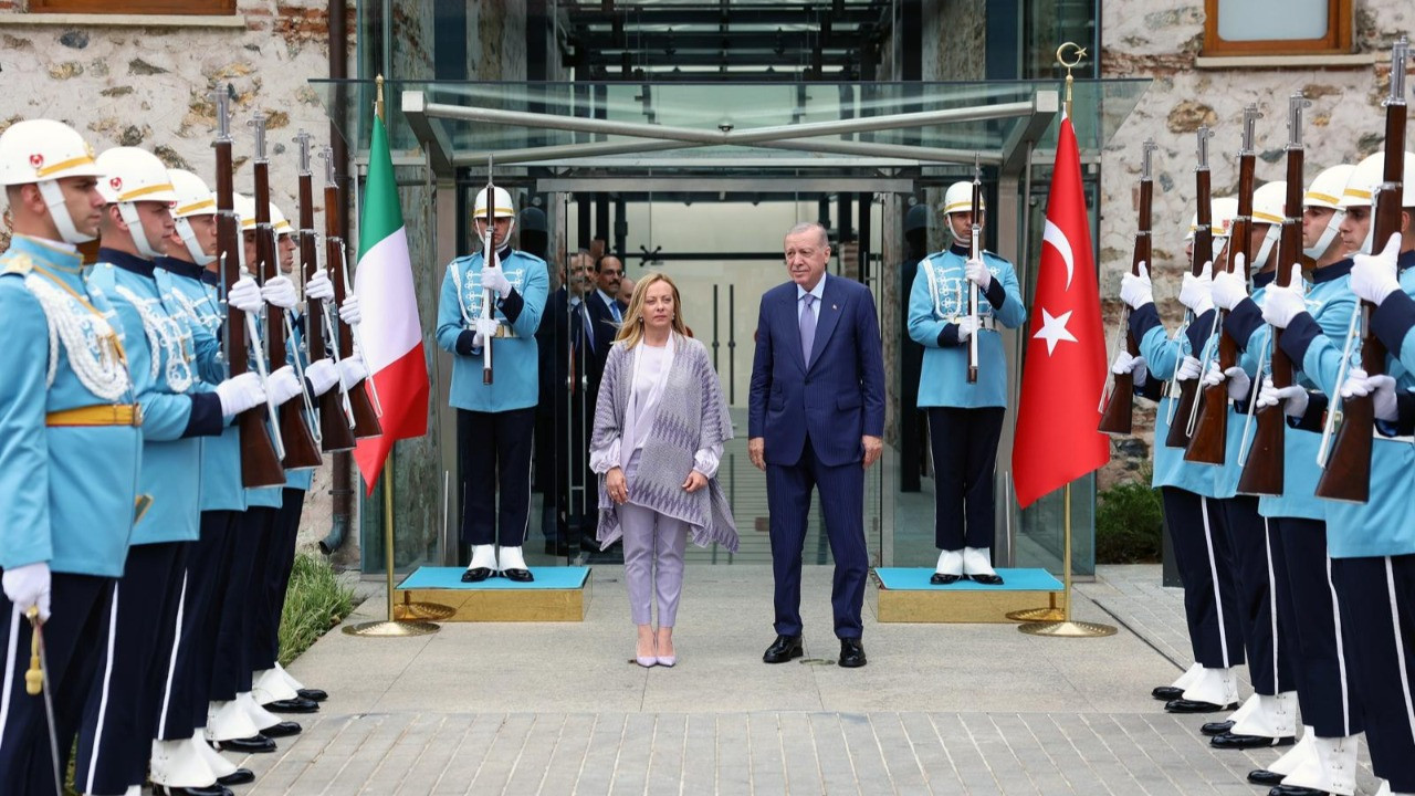 Cumhurbaşkanı Recep Tayyip Erdoğan, İtalya Başbakanı Giorgia Meloni ve Libya Başbakanı Abdulhamid Dibeybe'yi ayrı ayrı resmi törenle karşıladı.