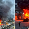 Ekiplerin çalışması ve yolda oluşan trafik havadan görüntülendi. Olayda yaralanan olmazken iş makinesi kullanılamaz hale geldi.