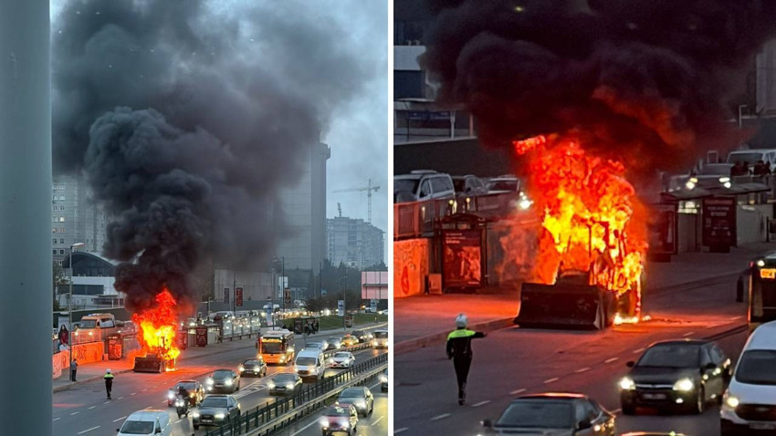İstanbul'da D-100 Karayolu Cevizlibağ mevkii Topkapı istikametinde seyir halinde olan iş makinesinde saat 08.00 sıralarında yangın çıktı.