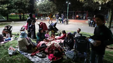 İkitelli Mehmet Akif Mahallesi'nde bazı vatandaşlar evlerinden battaniyelerini alarak çevredeki parklara giderken, kimileri ise evlerinin önünde kaldırımlarda beklemeyi tercih etti.
