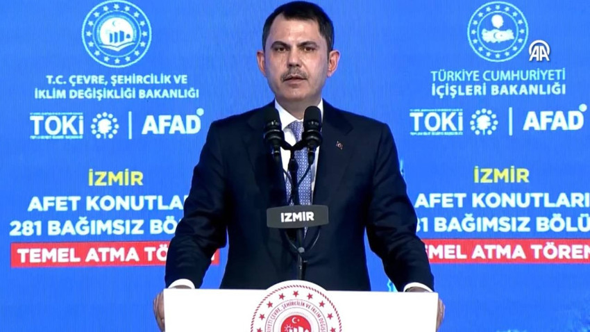 Çevre, Şehircilik ve İklim Değişikliği Bakanı Murat Kurum, İzmir'de Afet Konutları 281 Bağımsız Bölüm Temel Atma Töreninde konuştu.