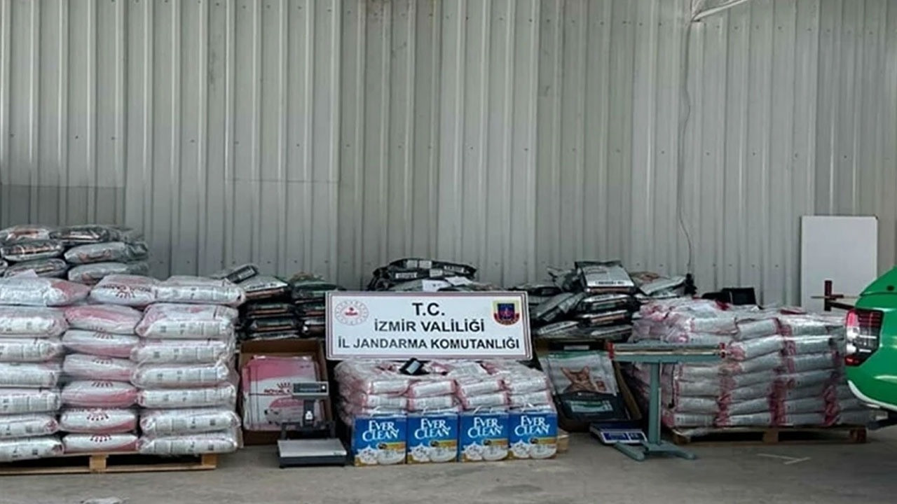İzmir İl Jandarma Komutanlığı KOM (Kaçakçılık ve Organize Suçlarla Mücadele) Şube Müdürlüğü ekipleri ve Menderes Cumhuriyet Başsavcılığı tarafından geçen salı günü alınan bir ihbar üzerine çalışma başlattı. Yapılan araştırmada sonunda gerçekleştirilen operasyonda 7 bini taklit, kalanı markasız olmak üzere toplam 14 bin 30 kilo sahte kedi-köpek maması, 1 ton taklit kedi kumu, 17 bin 510 taklit plastik kutu, 5 baskı makinesi ve 4 elektrikli terazi ele geçirildi.