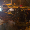 Kazanın etkisiyle savrulan otomobil ise, önünde seyreden başka bir otomobile çarptı. Sonrasında da yol kenarında bulunan beton duvara çarptı.