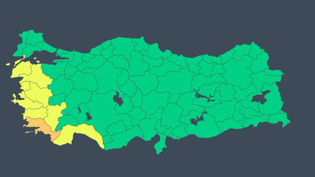 MGM ayrıca Antalya, Aydın, Balıkesir, Çanakkale, Denizli, İzmir ve Manisa'ya sarı, Muğla'ya ise turuncu kodlu kuvvetli sağanak yağış ve fırtına uyarısı yaptı.