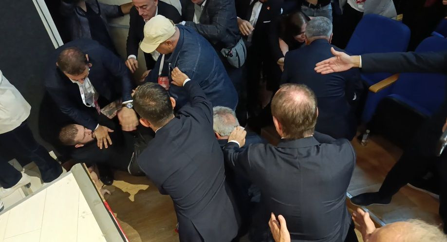 Divan kurulunun uyarısının ardından dışarı çıkmaya çalışan partili ile delegeler arasında yaşanan tartışma kavgaya dönüştü.