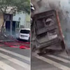 İtfaiye ekiplerinin müdahalesi sırasında binadan kopan ahşap evin duvarı, itfaiye erleri M.T. ve G.B.’nin üzerine düştüğü anlar vatandaşın cep telefonu kamerasınca kaydedildi. Görüntüde evin girişinde bekleyen itfaiye erlerinin üzerine ahşap evin duvarının düştüğü, 2 itfaiye eri düşen parçanın altında kalırken 1 erin ise son anda kaçtığı anlar yer aldı.