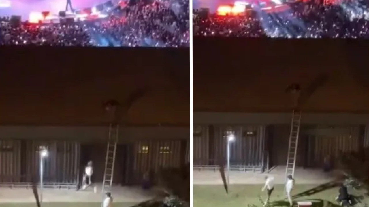 Mersin'de Mezitli ilçesi Akdeniz Mahallesi'ndeki Mezitli Belediyesi'ne ait Amfi Tiyatro'da dün akşam özel bir organizasyon şirketi tarafından düzenlenen konserde bazı gençler, konseri tiyatro salonunun çatısından izlemeye çalıştı.