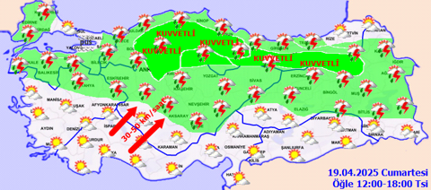 Meteoroloji Genel Müdürlüğü tarafından yapılan tahminlere göre ülkemizin kuzey ve iç kesimlerinin parçalı ve çok bulutlu, Marmara’nın güney ve batısı, İç Anadolu’nun kuzeyi, Batı ve Orta Karadeniz, Doğu Karadeniz’in iç kesimleri, Ardahan dışında Doğu Anadolu’nun kuzeyi ile Kocaeli, Sakarya, Kütahya, Giresun, Trabzon, Aksaray, Niğde, Bitlis, Elazığ ve Van çevrelerinin sağanak ve gök gürültülü sağanak yağışlı, diğer yerlerin az bulutlu ve açık geçeceği tahmin ediliyor.