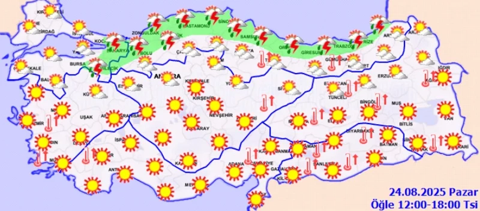 Meteoroloji Genel Müdürlüğü tarafından yapılan tahminlere göre: Ülkemizin kuzey kesimleri ile Doğu Akdeniz'in parçalı yer yer çok bulutlu, Batı Karadeniz, Orta ve Doğu Karadeniz kıyıları ile Kocaeli, Sakarya, Bilecik ve Tokat çevrelerinin yerel olmak üzere sağanak ve gök gürültülü sağanak yağışlı, diğer yerlerin az bulutlu ve açık geçeceği tahmin ediliyor.