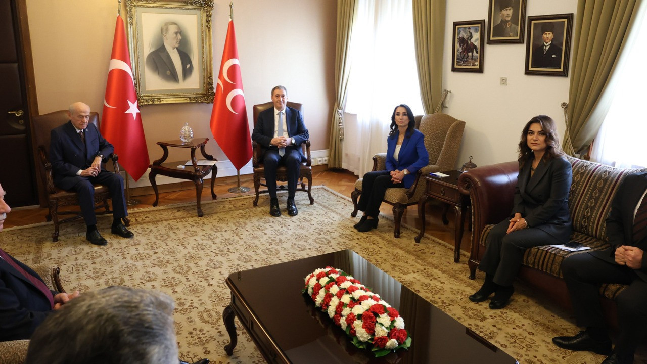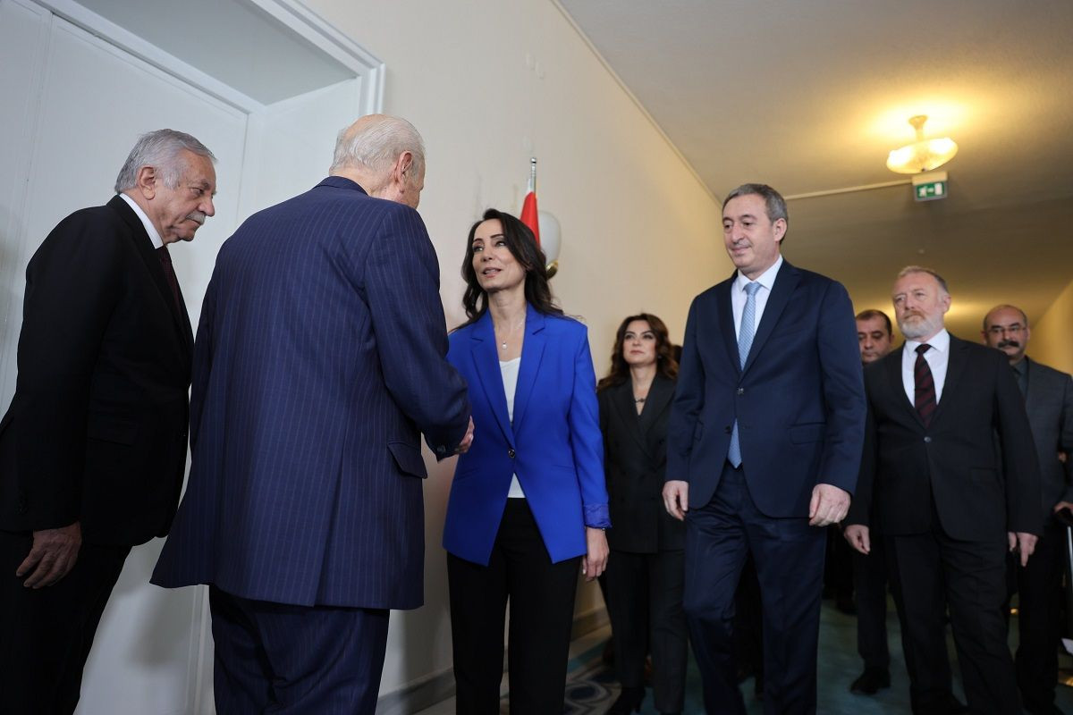 DEM Parti'nin siyasi partiler turu devam ediyor. DEM Parti, yeni süreç kapsamında üçüncü kez MHP'yi ziyaret etti. Görüşmeye MHP lideri Devlet Bahçeli de katıldı.