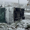 Bir fabrikada çalışan işçileri taşıyan Abdullah A. yönetimindeki 50 EC 110 plakalı servis midibüsü kar yağışı nedeniyle kayganlaşan yolda sürücüsünün kontrolü yitirmesi sonucu devrildi.